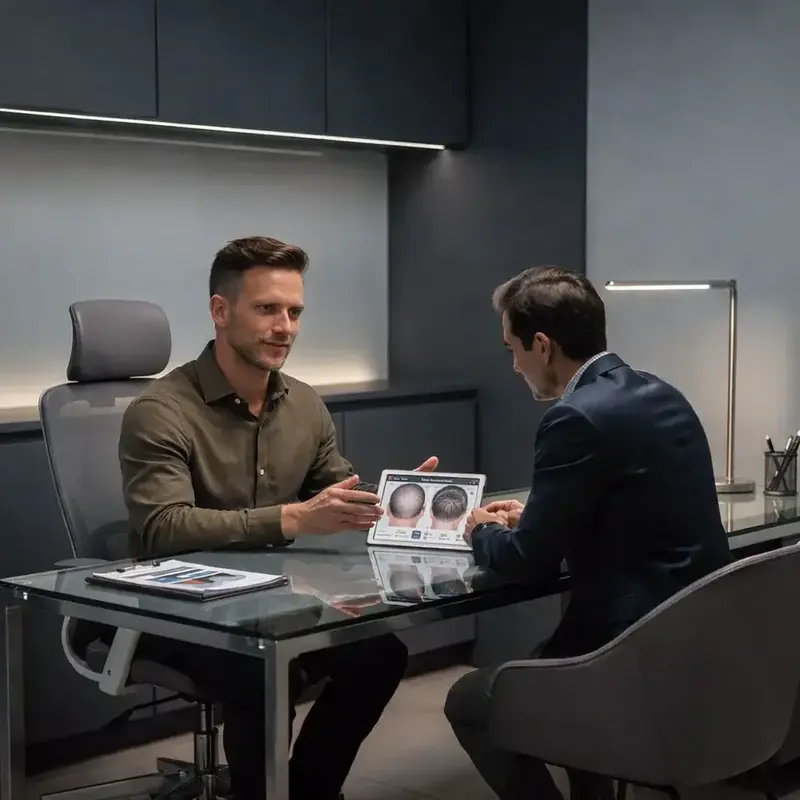 En konsultation är första steget för att bedöma om en hårtransplantation är rätt behandling för dig. Syftet är att samla in viktig information om ditt håravfall, din hälsa och dina förutsättningar för att uppnå ett bra resultat.